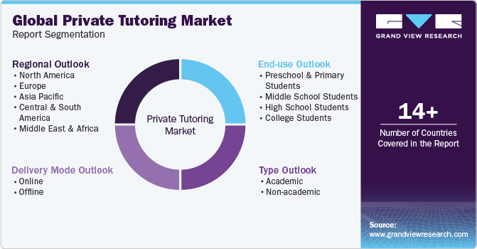 This report forecasts revenue growth at global, regional & country levels and provides an analysis of the latest trends and opportunities in each of the sub-segments from 2017 to 2030. For this study, Grand View Research has segmented the global private tutoring market report based on type, delivery mode, end-use, and region: