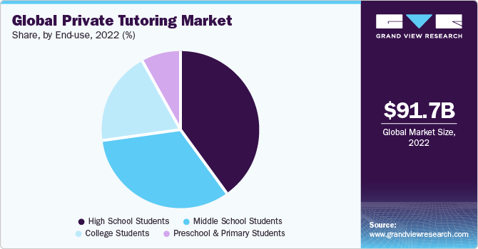Based on end-use, the high school students segment dominated the market with a revenue share of approximately 39.8% in 2022. The increasing significance of high school education, coupled with an increased awareness of the advantages associated with achieving excellent grades, particularly in the 10th and 12th standards, is driving parents to invest more in their children's high school years. In countries like India, educational institutions, both private and government, assess students based on their performance in 10th and 12th standards, making these years crucial. Subjects like science, mathematics, and English are among the key subjects for which private tutoring is sought.