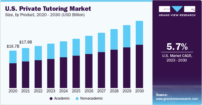 The globalprivate tutoring market size was estimated at USD 91.65 billion in 2022and is expected to grow at a compound annual growth rate (CAGR) of 6.8% from 2023 to 2030. Increasing competition among students and the growing preference for career-oriented courses are driving the demand for private tutoring services in the forecast period. Subjects such assoftware、硬件、会计等,认为职业-oriented, are gaining prominence among college students. Private tutoring serves as a complementary educational resource and differs from private schools, which can replace mainstream schooling entirely. Families have the flexibility to integrate private tutoring into any schooling setup, be it public or private. This versatility empowers students to enhance their competitiveness, preparing them for success in a globalized world.
