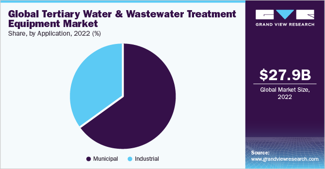 The municipal segment held a maximum share of 65.5%, in terms of revenue, in 2022 and is likely to continue to dominate the market over the forecast period. Increasing urban population, rising investment, and favorable government policies promoting infrastructure development are projected to witness tremendous demand for wastewater treatment systems in municipal sectors of developing markets including Turkey, China, India, Thailand, and Bangladesh. These factors are projected to propel the growth of the tertiary water & wastewater treatment equipment industry. For instance, in May 2022, WABAG signed an agreement with the Ghaziabad Nagar Nigam (GNN) to provide DOB service, which includes designing, building, and operation of the 40 MLD tertiary treatment reverse osmosis facility.