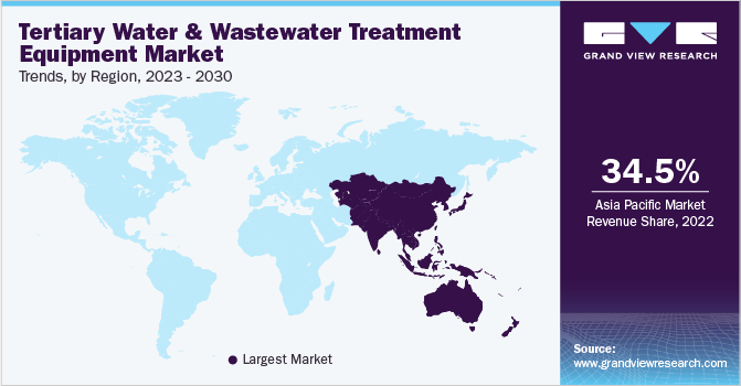 The Asia Pacific region held the largest revenue share of 34.5% of the global tertiary water & wastewater treatment equipment market in 2022. The improving economy of emerging markets, including China, India, Thailand, Indonesia, and Malaysia is forcing governments to frame supportive policies to promote investments in the extraction of natural resources, including crude oil and natural gas. High penetration of nitrogenous fertilizer manufacturing units in Australia, China, and India considering easy access to raw materials is expected to play a key role in increasing the demand for tertiary treatment methods over the forecast period.